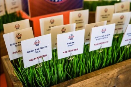 Welcome letters, programs, signage, escort and place cards, personalized cups, and water bottle labels all add those personal touches to your event. Personalized napkins and guest towels make a big splash in your colors with your guest of honor's name or logo on it. Kippot fabric and design can be customized for your religious ceremonies.